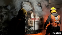 خبر رساں ادارے 'رائٹرز' کے مطابق غزہ کی وزارتِ صحت کا کہنا ہے کہ نصیرات کیمپ میں اسرائیلی حملے میں العودہ اسپتال کے قریب صحافیوں کی گاڑی کو نشانہ بنایا گیا جس کے نتیجے میں پانچ صحافی ہلاک ہوئے جو القدس الیوم ٹیلی ویژن سے وابستہ تھے۔