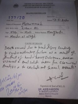 عباسی شہید اسپتال کے سینئر ڈاکٹر عابد ہارون نے بچوں کے ڈیتھ سرٹیفیکٹ جاری کیے۔ جس کے مطابق دونوں بچوں کی موت سر پر وزنی چیز کی ضرب لگنے سے ہوئی۔