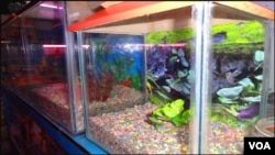 'وائس آف امریکہ' کی نمائندہ سے گفتگو میں ایک دکاندار نے بتایا کہ 'مچھلیوں کے مختلف دام اور نام ہیں جبکہ ان میں زیادہ تر گولڈ فش بکتی ہے، جس کا جوڑا 2500 روپے کے لگ بھگ ہے۔ یہی مچھلی زیادہ بکتی ہے'۔