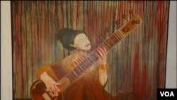 ان کی دوسری مصوری کے فن پارے میں ایک خاتون 'ستار' بجا رہی ہے۔