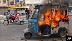 کراچی میں منگل کو ایم کیو ایم کے کارکن اور اس کے بھائی کی ہلاکت کے بعد شروع ہونے والی ہنگامہ آرائی ، فائرنگ اور جلاوٴ گھیراوٴمیں مرنے والوں کی تعداد 8ہوگئی ہے جبکہ 35گاڑیاں نذر آتش کردی گئیں۔ کراچی کے علاوہ سندھ کے کچھ شہروں سے بھی اسی قسم کی اطلاعات موصول ہوئی ہیں خاص کر حیدرآباد میں کراچی کے بعد سب سے زیادہ ہنگامہ آرائی اور جلاوٴ گھیراوٴ دیکھنے میں آیا۔