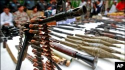برآمد ہونے والے اسلحہ میں 2 اینٹی ایئر کرافٹ گنز، 2 ایل ایم جی، 2 راکٹ لانچر، 50 عدد راکٹ (آر پی جی)، 60 عدد ہینڈ گرینیڈز، 60 عدد دیسی ساختہ بم، 2 عدد رائفل 222، فضاء سے زمین پر مار کرنے والے منی راکٹ 4 عدد، 200 سے زائد اینٹی ایئر کرافٹ گن کی گولیاں اور 625 سے زائد مختلف اقسام کی گولیاں برآمد ہوئیں۔یہ اسلحہ میڈیا کو بھی دکھایا گیا۔