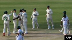 پاکستان کی جانب سے یاسر شاہ نے تین، نعمان علی اور شاہین شاہ آفریدی نے دو دو جب کہ حسن علی نے ایک وکٹ حاصل کی۔