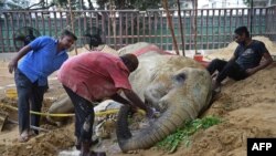 بیماری اور جسمانی کمزوری کے سبب اس سے اٹھا نہیں گیا جس کے بعد فور پاز کی ٹیم سے آن لائن رابطے اور مشاورت سے چڑیا گھر کی انتظامیہ نے بیمار ہتھنی کو کرین کی مدد سے تالاب سے نکال کر ریت کے ٹیلے پر لٹایا جہاں وہ موت تک بے سدھ پڑی رہی۔