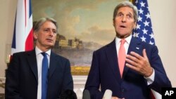 برطانوی وزیر خارجہ فلپ ہیمنڈ سے بات چیت کے بعد لندن میں گفتگو کرتے ہوئے، کیری نے روس اور ایران پر زور دیا کہ وہ اسد کو مذاکرات پر قائل کرنے کے لیے اپنا اثر و رسوخ استعمال کریں۔۔۔ تاہم، اُنھوں نے کہا کہ ’اُن کے جانے کے وقت کا فیصلہ مذاکرات کے ذریعے ہوگا‘