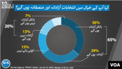 جہاں 65 فی صد نوجوانوں نے یہ کہا کہ وہ اُمید رکھتے ہیں کہ انتخابات شفاف اور منصفانہ ہوں گے تو وہیں ہر پانچ میں سے ایک نوجوان کا کہنا تھا کہ اُنہیں انتخابات شفاف ہونے کی اُمید نہیں ہے۔