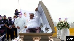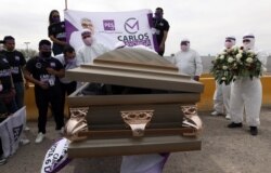 میکسیکو میں کانگریس کے ایوانِ زیریں 'چیمبر آف ڈپٹیز' کے انتخابات کے لیے ایک امیدوار کارلوس میورگا نے تابوت سے نکلتے ہوئے انتخابی مہم کا آغاز کیا۔