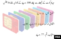 ایک معروف موبائل کمپنی کے نمائندے نے وی او اے کو بتایا ہے کہ پہلے کُل وصول کردہ ٹیکس 23.06 روپے کے لگ بھگ تھا اور ایک صارف جب 100 روپے کا بیلنس لوڈ کرتا تھا تو تمام کٹوتی کے بعد یہ رقم 76.96 روپے رہ جاتی تھی۔
