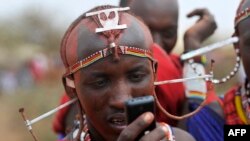 کینیا کے ایک دیہی علاقے میں ریڈ کراس کی رضاکار سروے کے لیے موبائل فون استعمال کر رہی ہے۔