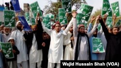 وفاقی دارالحکومت کی ایک معروف ’آبپارہ مارکیٹ‘ کے قریب چوک میں چند سو افراد پر مشتمل احتجاجی ریلی میں شامل افراد نے پلے کارڈ اُٹھا رکھے تھے جن پر ممتاز قادری کے حق میں نعرے درج تھے۔