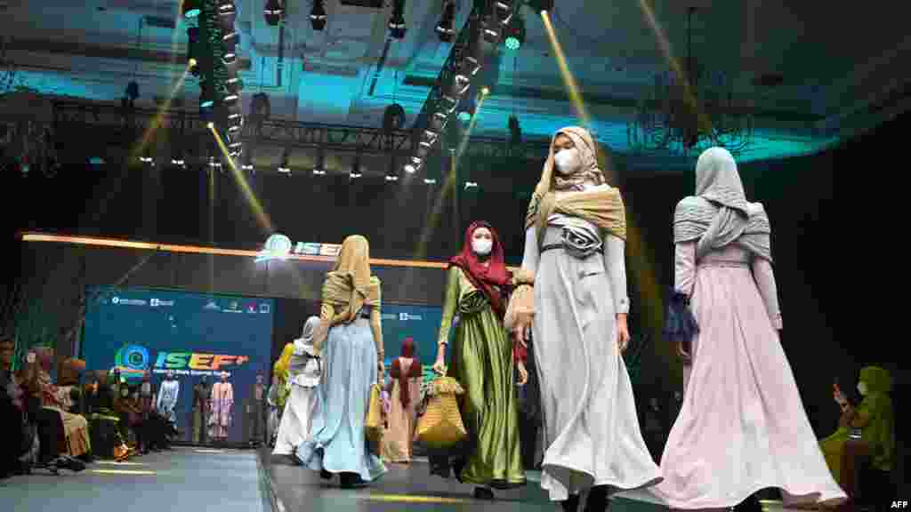 انڈونیشیا کے دارالحکومت جکارتہ میں ان دنوں 'مسلم فیشن شو' ہو رہا ہے، جس میں شریک ماڈلز حجاب پہن کر نت نئے ملبوسات کی نمائش کر رہی ہیں۔ یہ شو انڈونیشیا کے سالانہ فیسٹیول 'انڈونیشیا شریعہ اکنامک' کا حصہ ہے۔ چار روزہ 'مسلم فیشن شو' کا اختتام ہفتے کو ہو گا۔ مسلم فیشن شو کی کچھ تصویری جھلکیاں۔