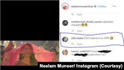 سدرہ نامی صارف نے نیلم منیر کو کہا کہ آپ آئی ایس پی آر پر الزام نہ لگائیں۔