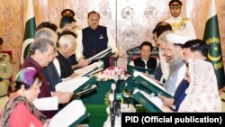 پاکستان کے نومنتخب وزیرِ اعظم عمران خان کی کابینہ کے 16 وزرا نے اپنے عہدوں کا حلف اٹھالیا ہے۔