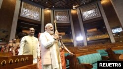 بھارت کے وزیر اعظم نریند رمودی نے اتوار کو نئی دہلی میں پارلیمنٹ کی نئی عمارت کا افتتاح کر دیا۔ اس سلسلے میں ہندو مذہب کے مطابق تقریب کا اہتمام کیا گیا جو کئی گھنٹے تک چلی۔