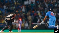 بھارت کی جانب سے کپتان دھونی 30 رنز کے ساتھ ٹاپ اسکورر رہے۔ ورات کوہلی نے 23 اور روی چندرا ایشون نے 10 رنز بنائے۔ کوئی اور بھارتی کھلاڑی ڈبل فیگر میں اسکور نہ کرسکا۔
