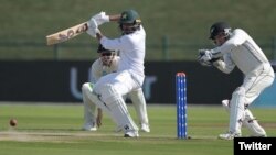 ابوظبی ٹیسٹ: پاکستان کی 74 رنز کی برتری، کیویز 56 پر ایک آؤٹ