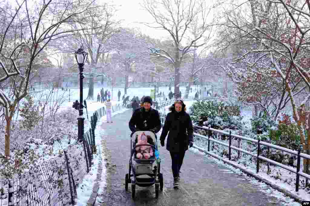 امریکہ کے شہر نیویارک میں برف باری سے ہر چیز نے سفید چادر اوڑھ لی ہے۔ کئی شہریوں نے خوب صورت سرد موسم سے لطف اندوز ہونے کے لیے تفریحی مقامات کا بھی رخ کیا۔ برف باری کے سبب پروازوں کا شیڈول بھی متاثر ہوا ہے۔ محکمۂ موسمیات نے آنے والے دنوں میں مزید برف باری کی پیش گوئی کی ہے۔