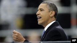 پیر کو اپنی دوسری مدتِ صدارت کا حلف اٹھانے کے بعد واشنگٹن کے 'نیشنل مال' میں جمع لاکھوں افراد سے خطاب کرتے ہوئے صدر اوباما کا کہنا تھا کہ امریکی قوم کو اعلانِ آزادی میں درج اصولوں پر یقین رکھنا ہوگا کہ تمام انسان برابر پیدا کیے گئے ہیں اور انہیں پیدائشی طور پر زندگی، آزادی اور خوش رہنے کے حقوق حاصل ہیں۔
