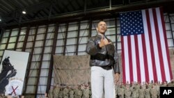 بگرام ائیر بیس پر فوجیوں سے خطاب میں اُنھوں نے کہا کہ افغانستان جنگ کا ایک ’’ذمہ دارانہ انجام‘‘ ہو گا۔