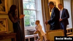 شہزادہ ولیم اور شہزادی کیٹ مڈلٹن کے صاحبزادے دو سالہ شہزادہ جارج جمعہ کی شب کنزنگٹن محل کی پارٹی میں اسوقت اسٹار بن گئے،جب انھوں نے اپنے گھر میں امریکی صدر باراک اوباما اور خاتون اول مشعل اوباما کو ڈریسنگ گاؤن اور موزوں کے ساتھ خوش آمدید کہا ہے۔