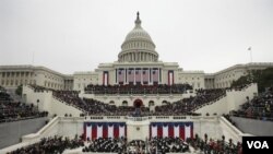 پیر کو واشنگٹن میں واقع کانگریس کی عمارت 'کیپٹل ہل' کے سامنے منعقد ہونے والی تقریب میں امریکی سپریم کورٹ کے چیف جسٹس جان جی رابرٹس جونیئر نے صدر اوباما سے ان کے عہدے کا حلف لیا۔
