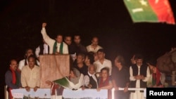 پاکستان تحریک انصاف کے چیئرمین نے پیر کی رات اعلان کیا کہ منگل کو وہ ’ریڈ زون کی طرف نکلیں گے‘۔ بقول اُن کے، ’کچھ ہوا تو کارکنوں سے پہلے گولی مجھے لگے گی‘۔