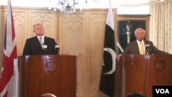 وزارت خارجہ میں ہونے والے ابتدائی مذاکرات کے بعد ولیم ہیگ اور سرتاج عزیز نے ایک مشترکہ نیوز کانفرنس سے خطاب بھی کیا، جس میں اُنھوں نے بتایا کہ دہشت گردی کے خلاف جنگ میں قریبی تعاون بڑھانے اور پاکستان کو درپیش اقتصادی مشکلات سے متعلق اُمور پر تفصیل سے بات چیت کی گئی ۔