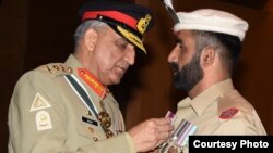 اس سے قبل جنرل ہیڈکوارٹرز میں تقسیم اعزازات کی تقریب ہوئی جس میں عسکری حکام، غازیوں اور شہدا کے لواحقین نے شرکت کی جب کہ آرمی چیف نے شہدا کے لواحقین اور غازیوں میں اعزازات تقسیم کیے۔