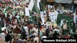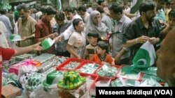 ایم اے جناح روڈ پر واقع معروف پیپر مارکیٹ میں خریداروں کا رش عروج پر ہے۔ خواتین، بچے اور بوڑھے سب ہی پاکستان سے اظہار محبت کے لئے قومی پرچم کے رنگوں سے مزین مختلف اشیاء کی خریداری کرتے نظر آتے ہیں۔