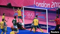 لندن اولمپکس کے ہاکی مقابلوں میں منگل کو آسٹریلیا نے پاکستان کو سات، صفر سے ہرا دیا جس کے ساتھ ہی پاکستانی ٹیم میڈل کی دوڑ سے باہر ہوگئی ہے۔