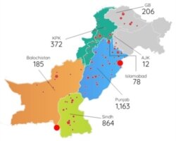 خیبر پختونخوا میں 372 افراد میں وبا کی تصدیق ہوئی ہے جب کہ گلگت بلتستان میں 206 متاثر افراد سامنے آئے ہیں۔ بلوچستان میں حکومت نے 185 کیسز بتائے ہیں۔