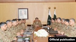 پاکستان کی عسکری قیادت کے اجلاس میں یہ فیصلہ کیا گیا کہ انسداد دہشت گردی کے قومی لائحہ عمل کے تحت دہشت گردوں، انتہا پسندوں اور فرقہ واریت میں ملوث عناصر کا بلا تفریق خاتمہ کیا جائے گا۔