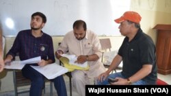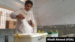کراچی کے علاقے پی آئی بی کالونی کے ایک پولنگ اسٹیشن میں ایک خاتون اور ایک بزرگ شہری اپنا حقِ رائے دہی استعمال کر رہے ہیں۔