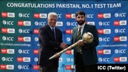 پاکستان گزشتہ ماہ کرکٹ کی عالمی تنظیم "آئی سی سی" کی ٹیسٹ رینکنگ میں پہلی پوزیشن حاصل کرنے میں کامیاب ہوا تھا اور بدھ کو تنظیم کے چیف ایگزیکٹو ڈیوڈ رچرڈسن نے صف اول کی ٹیم کے لیے خصوصی گرز "ٹیسٹ میث" قذافی اسٹیڈیم میں منعقدہ تقریب میں مصباح الحق کے حوالے کیا۔