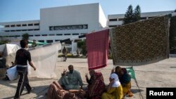گزشتہ رات کو پارلیمنٹ ہاؤس کے بیرونی جنگلے کو توڑ کر مظاہرین پارلیمان کی حدود میں داخل ہو گئے تھے اور اتوار کی صبح انھوں نے یہاں سبزہ زار پر اپنے خیمے لگا کر ڈیرے ڈال لیے۔