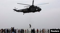 امدادی کارکنوں کا کہنا ہے کہ پاکستان بحریہ کے ہیلی کاپٹروں کی مدد سے لاپتہ ہونے والے افراد کی تلاش اور امداد کا کام جاری ہے۔
