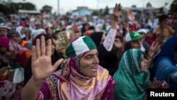 عمران خان یہ کہہ چکے ہیں کہ ہفتہ کے روز دھرنے کا ایک مہینہ پورے ہونے پر ان کے کارکن زیادہ سے زیادہ تعداد میں پارلیمان کے سامنے جمع ہوں۔