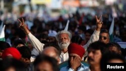 اتوار کو بھی ملک کے سب سے بڑے شہر اور اقتصادی مرکز کراچی میں ایک بااثر سیاسی جماعت متحدہ قومی موومنٹ نے اپنے قائد الطاف حسین کے ساتھ اظہار یکجہتی کے لیے ایک جلسے کا اہتمام کیا۔