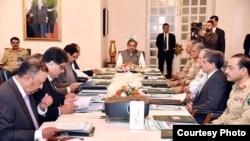 وزیر اعظم شاہد خاقان عباسی کی زیر صدارت قومی سلامتی کمیٹی کا اجلاس منعقد ہوا جس میں چئیرمین جوائنٹ چیفس آف سٹاف کمیٹی، تینوں مسلح افواج کے سربراہان، وزیر داخلہ احسن اقبال، وزیر خارجہ و دفاع خرم دستگیر، مشیر قومی سلامتی جنرل ریٹائرڈ ناصر جنجوعہ اور ڈی جی آئی ایس آئی کے علاوہ دیگر اعلیٰ حکام بھی شریک ہوئے۔
