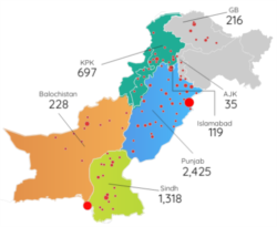 سرکاری طور پر پاکستان میں سب سے زیادہ ہلاکتیں خیبر پختونخوا میں ہوئی ہیں جن کی تعداد 31 ہے جب کہ سندھ میں 28 افراد کی موت ہو چکی ہے۔