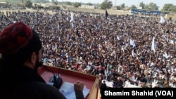 پشتون تحفظ تحریک کے سربراہ نے کہا کہ ابھی تک پختونوں کے خلاف جارجیت اور بربریت کا سلسلہ جاری ہے اور اس جلسے میں ایسے والدین ہزاروں کی تعداد میں موجود ہیں جن کے پیارے ان کے بقول ریاستی اداروں کے اہلکاروں نے غائب کر دئیے ہیں۔ اُنہوں نے کہا کہ لاپتا کرنے کے سلسلے کو بند کرنے اور اس قسم کے واقعات کی روک تھام اور چھان بین کیلئے Truths and Reconciliation commission قائم کرنے کا مطالبہ کیا۔