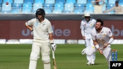 دبئی ٹیسٹ کے چوتھے روز کیوی بیٹسمین اننگز کی شکست بچنے کے لیے میدان میں اترے لیکن پاکستانی بالرز کو ابتدا ہی میں کامیابی مل گئی جب حسن علی نے ٹام لیتھم کو 50 رنز پر وکٹ کیپر سرفراز احمد کے ہاتھوں کیچ آؤٹ کرادیا۔
