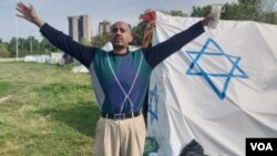 اسلام آباد پریس کلب کے سامنے نصب ڈیوڈ آریل کے خیمے پر اسرائیل کا پرچم بھی چسپاں تھا۔