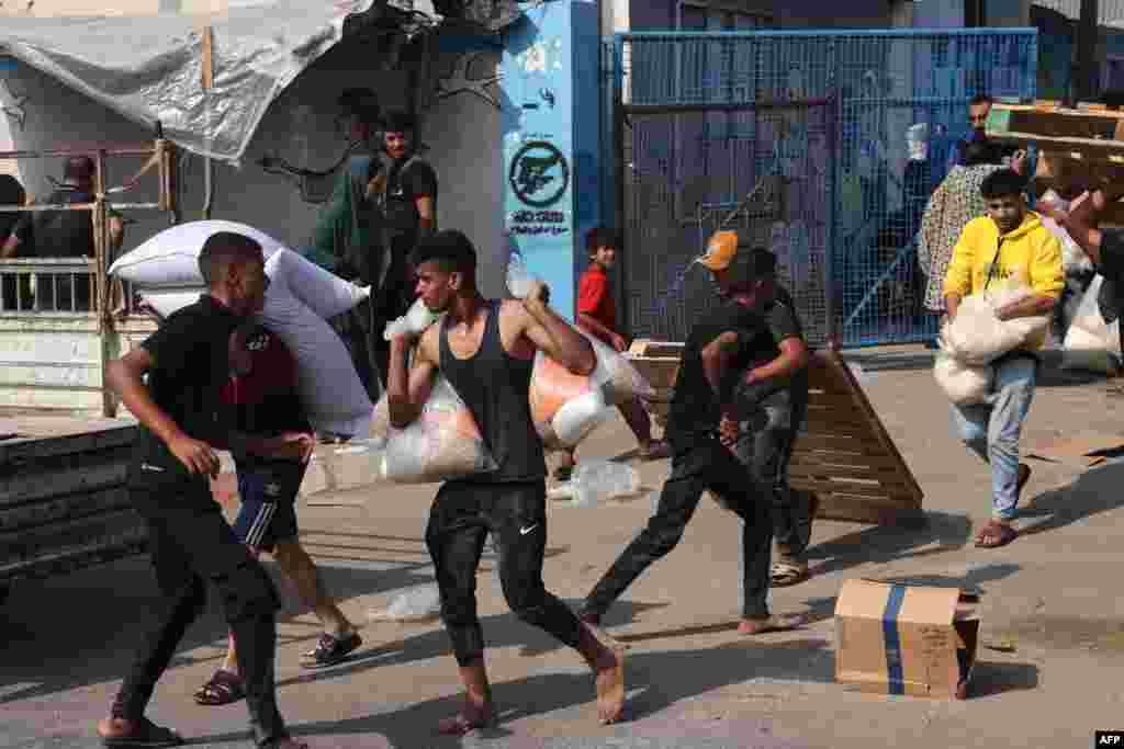 غزہ کے محصورین اقوامِ متحدہ کے زیرِ اہتمام چلنے والے کیمپ سے امداد وصول کر رہے ہیں۔ اسرائیل حماس جنگ سے متاثر ہو کر غزہ کے شمال سے جنوب کی جانب منتقل ہونے والے متاثرین کو کھانے پینے کی اشیا سمیت دیگر ضروری سامان فراہم کیا جا رہا ہے۔ مصر کے سرحدی علاقے رفح کراسنگ سے اقوامِ متحدہ کے زیرِ اہتمام یہ امداد غزہ لائی جا رہی ہے جس کے بعد اسے مستحقین میں تقسیم کیا جاتا ہے۔ تنازع کے آغاز کے بعد سے اب تک لگ بھگ 23 لاکھ آبادی والی غزہ کی پٹی میں خوراک اور ادویات کے صرف 84 امدادی ٹرک ہی پہنچ سکے ہیں۔ اقوامِ متحدہ کے فلسطینی پناہ گزینوں کے ادارے کا کہنا ہے کہ فیول کی قلت کی وجہ سے اسپتالوں میں انسانی جانیں بچانے کے آپریشنز بری طرح متاثر ہو رہے ہیں۔