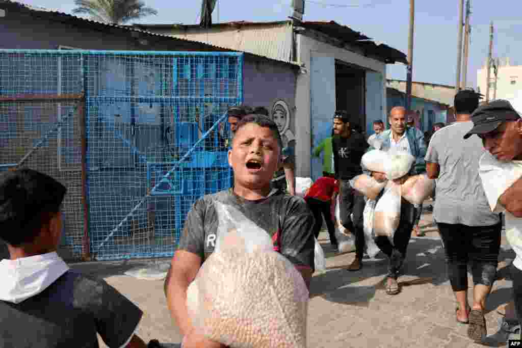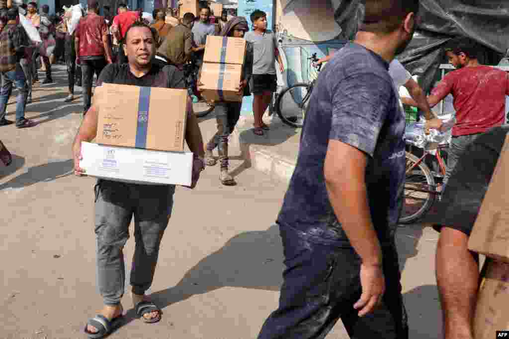 غزہ کے محصورین اقوامِ متحدہ کے زیرِ اہتمام چلنے والے کیمپ سے امداد وصول کر رہے ہیں۔ اسرائیل حماس جنگ سے متاثر ہو کر غزہ کے شمال سے جنوب کی جانب منتقل ہونے والے متاثرین کو کھانے پینے کی اشیا سمیت دیگر ضروری سامان فراہم کیا جا رہا ہے۔ مصر کے سرحدی علاقے رفح کراسنگ سے اقوامِ متحدہ کے زیرِ اہتمام یہ امداد غزہ لائی جا رہی ہے جس کے بعد اسے مستحقین میں تقسیم کیا جاتا ہے۔ تنازع کے آغاز کے بعد سے اب تک لگ بھگ 23 لاکھ آبادی والی غزہ کی پٹی میں خوراک اور ادویات کے صرف 84 امدادی ٹرک ہی پہنچ سکے ہیں۔ اقوامِ متحدہ کے فلسطینی پناہ گزینوں کے ادارے کا کہنا ہے کہ فیول کی قلت کی وجہ سے اسپتالوں میں انسانی جانیں بچانے کے آپریشنز بری طرح متاثر ہو رہے ہیں۔