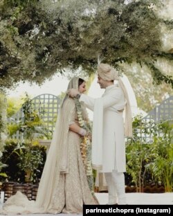 بھارتی اخبار 'ہندوستان ٹائمز' کے مطابق اتوار کو اودھے پور میں پرینیتی اور راگھو چڈھا کی شادی کی تقریب منعقد ہوئی جس میں ان کے قریبی دوست اور رشتہ دار شریک ہوئے۔