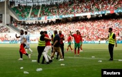 دوسری جانب منتظمین نے ایک بیان میں کہا ہے کہ بعض تماشائیوں کی جانب سے گراؤنڈ میں آنے کے واقعے کے بعد ارجنٹائن اور مراکش کے درمیان سینٹ ایتن اسٹیڈیم میں کھیلا جانے والا میچ روکنا پڑا۔
