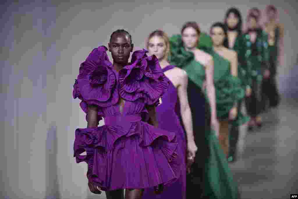 پیرس فیشن ویک: دیدہ زیب لباس میں ملبوس ماڈلز کے جلوے