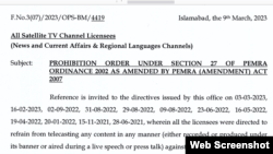 مراسلے کے مطابق اس پابندی کا اطلاق فوری طور پر ہو گا اور یہ پیمرا آرڈیننس 2007 کے تحت عائد کی گئی ہے۔