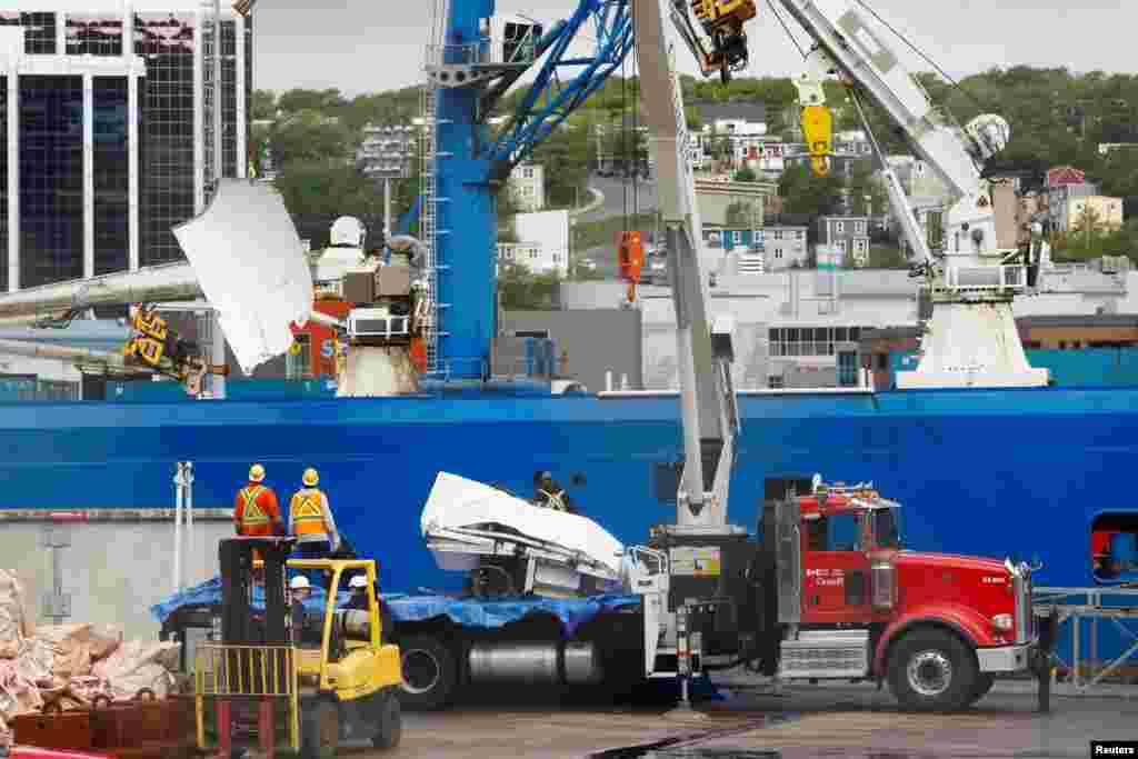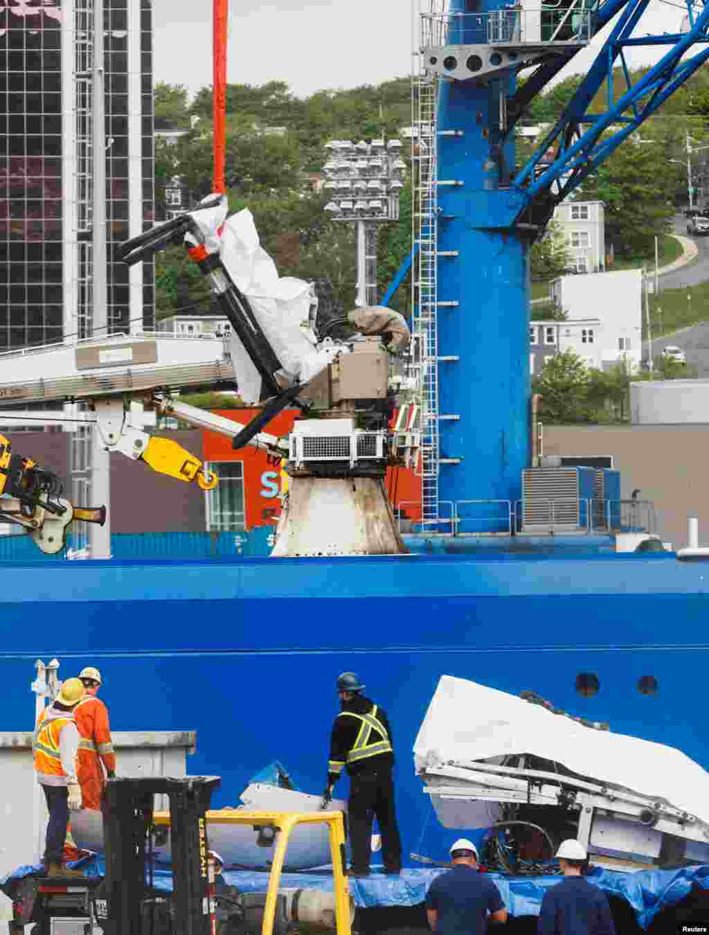 بحر اوقیانوس میں لاپتا ہونے والی آب دوز ٹائیٹن کا ملبہ اور اس میں موجود پانچ افراد کی ممکنہ باقیات کو سمندر کی تہہ سے نکال کر بدھ کو کینیڈا کے ساحل پر منتقل کر دیا گیا ہے۔ امریکی کوسٹ گارڈ کا کہنا ہے کہ تباہ ہونے والی آب دوز ٹائیٹن کے ٹکڑوں اور ممکنہ طور پراس میں موجود افراد کی باقیات کو کینیڈا کے ایک جہاز کے ذریعے جائے حادثہ سے لگ بھگ 400 میل شمال میں سینٹ جائز، نیو فاؤنڈ لینڈ لایا گیا ہے۔ ملنے والے شواہد کے تجزیے اور تحقیقات کے لیے انہیں میرین بورڈ آف انویسٹی گیشن منتقل کیا جائے گا۔ ٹائٹن نامی آب دوز 18 جون کو بحرِ اوقیانوس میں 3800 میٹر گہرائی میں موجود تاریخی بحری جہاز ٹائٹینک کے ملبےکو دیکھنے کے لئے سفر پر روانہ ہوئی تھی لیکن سفر کے آغاز کے پونے دو گھنٹے بعد اس سے رابطہ منقطع ہو گیا تھا۔ بعد میں ٹائٹن کے پھٹنے کے باعث اس میں موجود پانچ افراد ہلاک ہو گئے تھے۔